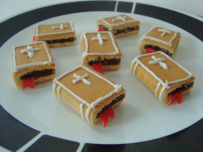 The Bibles are made from fig newtons. I got the idea to make books from fig newtons over on Shower of Roses. I’ll be posting the full directions for making the Bibles later this week as well.