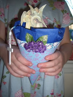 - Printable May day baskets (This is the free printable May day basket we used from Glenda’s World, then I added some Mary stickers to ours.)
