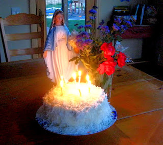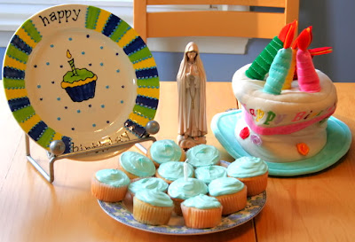 You can decorate with anything blue! Be sure to bring out a Mary statue (or several) if you have some. Think party hats and streamers- it is a birthday party after all! 😉