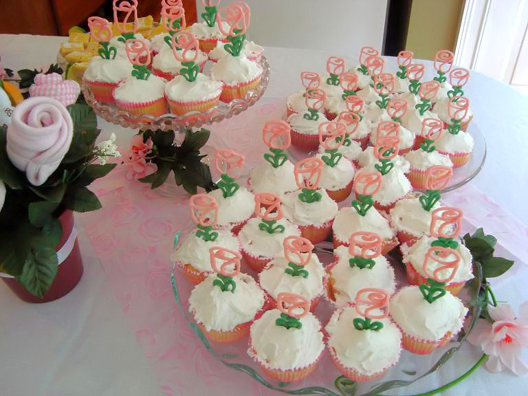 When I saw these rose cupcakes over on I Am Baker, I knew they were just the right thing for my Baby Shower of Roses! And they really aren’t as tricky to make as you’d think! These would be great to make for St. Therese’s feast day (Oct 1) or St. Rose of Lima’s feast day, which is coming up on August 23!